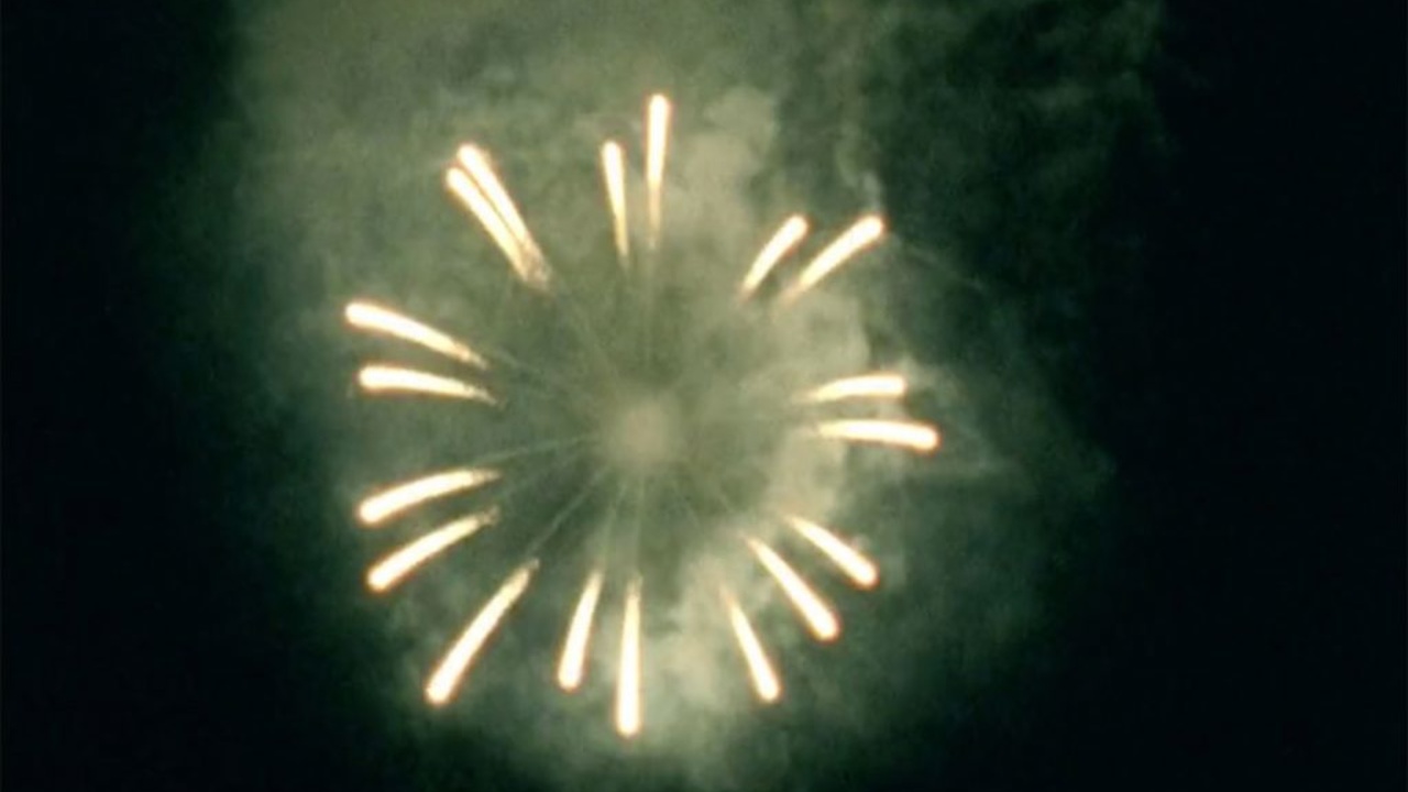 Ana Vaz, Atomic Garden, 2018, Filmstill, 16mm Film, 8 Min. © Ana Vaz.In the “atomic garden”, the human being—a gardener—is decentralized by the fact that she can only return to her garden from the evacuation zone at certain times of the day. In the experimental film’s stroboscopic cinematography, oscillating between explosions in the night sky and contaminated flowers, the gardener is only present in her absence.7 Such an absence, or decentralizing of human life, also defines the work of Ikebana artist Atsunobu Katagiri.